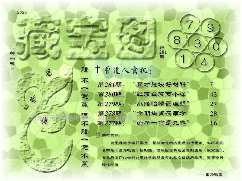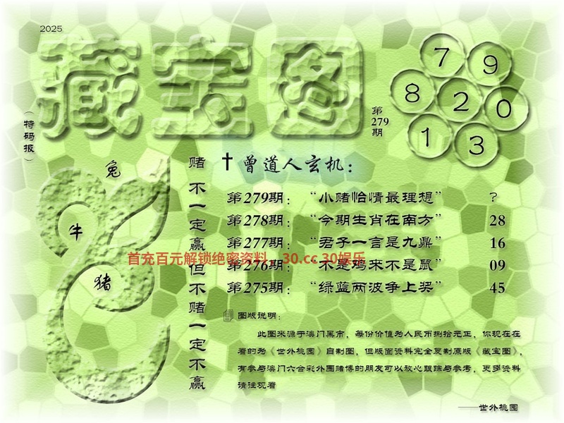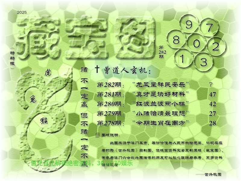283期藏宝图曾道人玄机:更新 解:更新 解特肖:更新 |